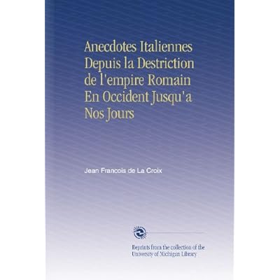 Anecdotes Italiennes Depuis La Destriction De L Empire Romain En Occident Jusqu A Nos Jours of nonfiction. ... Anecdotes Italiennes Depuis La Destriction De L Empire Romain En Occident Jusqu A Nos Jours / by . ... of her life. At one point, in ...